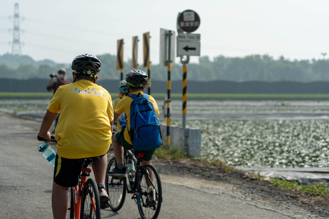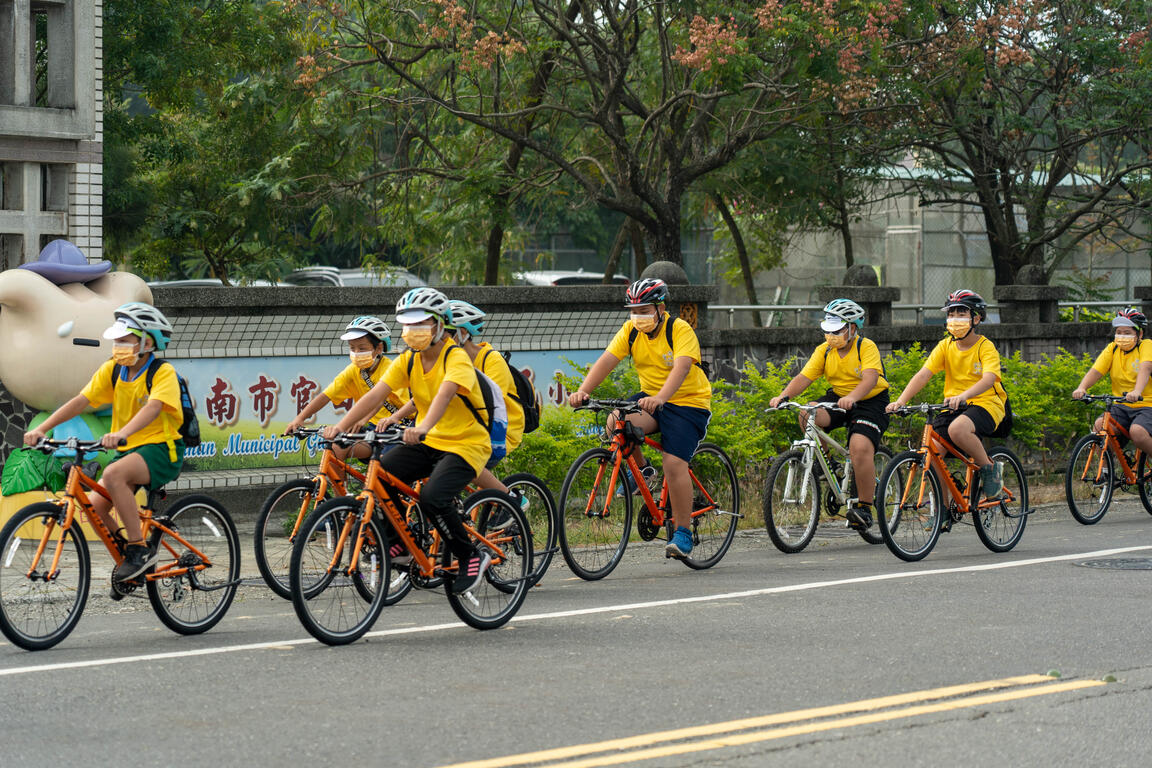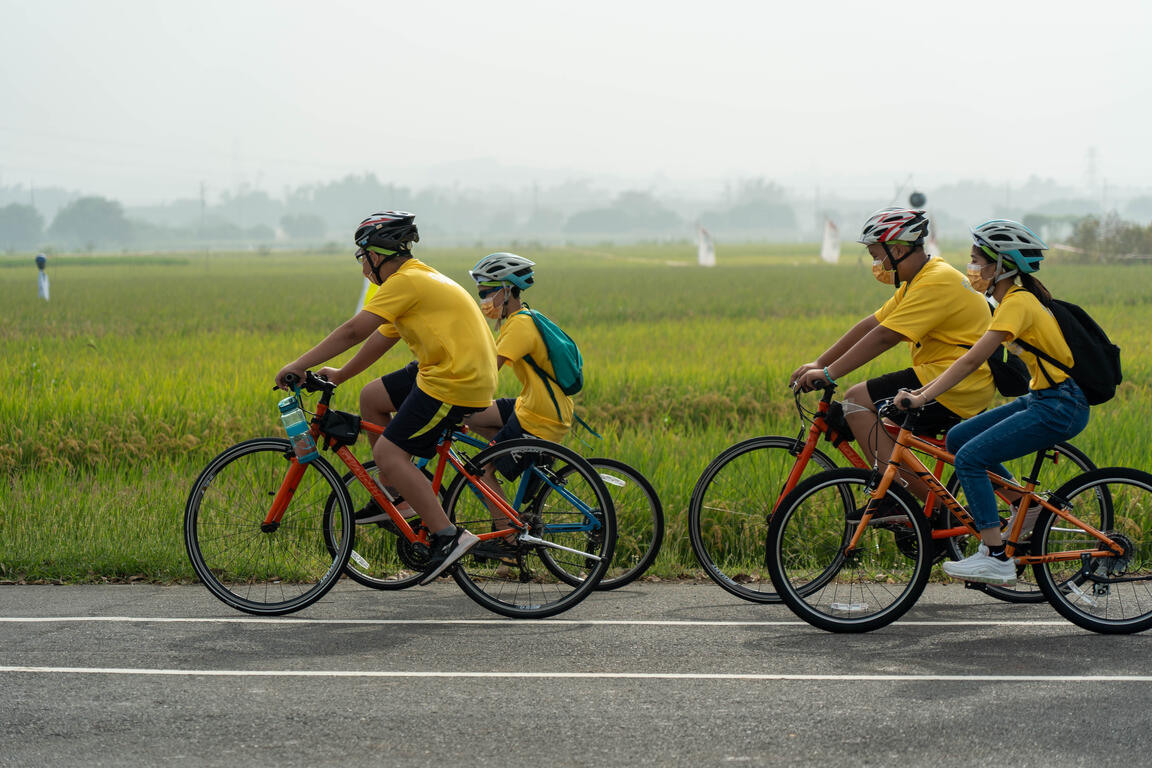 Tainan Municipal Guantian District Guantian Elementary School is located near Siraya National Scenic Area Guantian Visitor, it’s a school which major nature education, the director of Siraya National Scenic Area Administration and the principal of Tainan Municipal Guantian District Guantian Elementary School lead 40 teachers and students to ride a bike from Guantian Visitor to Chianan Irrigation Channel, the view of the road happens to be golden rice fields and water caltrop fields in the harvest season, this route is also a part of “Lingbo Guantian Route”, hope to let students who will graduate next year to understand their own hometown through the cycling graduation season activity.