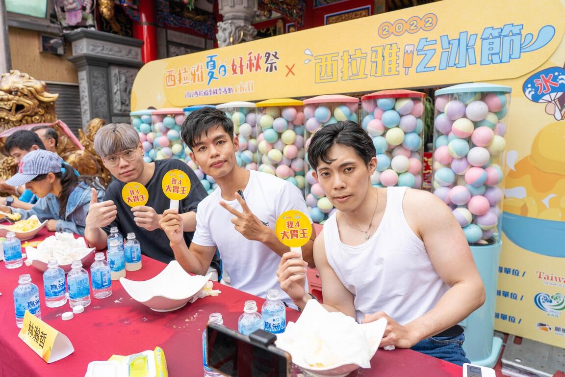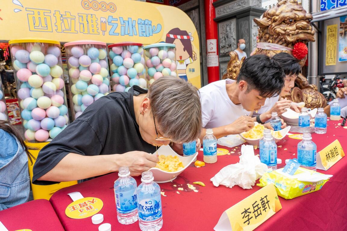 「シラヤかき氷祭り」今7/2玉井区(ユージンチュウ)の北極殿にイベント開催!玉井区マンゴーギネス世界記録を敬意をして1対1000の比率で1.554㎏大食い競技、15位選手同時にパクパクとアイスを食べて、驚嘆されました。新北市に来た劉(りゅう)承(しょう)鈺(ぎょく)は新大食い王になり、129秒以内に1位を取りました!一定の金額が達成すると交換できる1000個ガチャもイベント開催したところ3時間以内に切れ、玉井街で大勢の人もチル(Chill)にとまらない。マンゴーの旬の時期を把握するようにみんなを招待し、シラヤのチル(Chill)を味わいます。