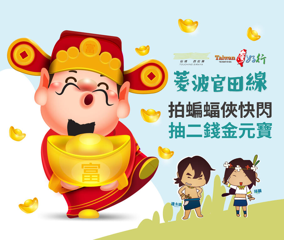 天高く馬肥ゆる秋!空気が澄んで心地よい秋は官田オニビシの収穫期です!食べるとおいしいオニビシですが、何かに似ていると思いませんか?そう!コウモリにそっくりです!耳寄りなお知らせです!10月中に「台湾好行菱波官田線」にご乗車になり車内でバットマンに扮したスタッフを写真に撮って、ご自身のFacebookに公開で投稿すると、抽選で金元宝(「元朝金貨」を模したもの)が当たります。また車内で「台湾好行菱波官田線」の乗車証明劵をもらい、「官田ビジターセンター」2階の売店に提示するとプレゼントがもらえるキャンペーンも実施中です。西拉雅国家風景区管理処はみなさまのお越しをお待ちしています!