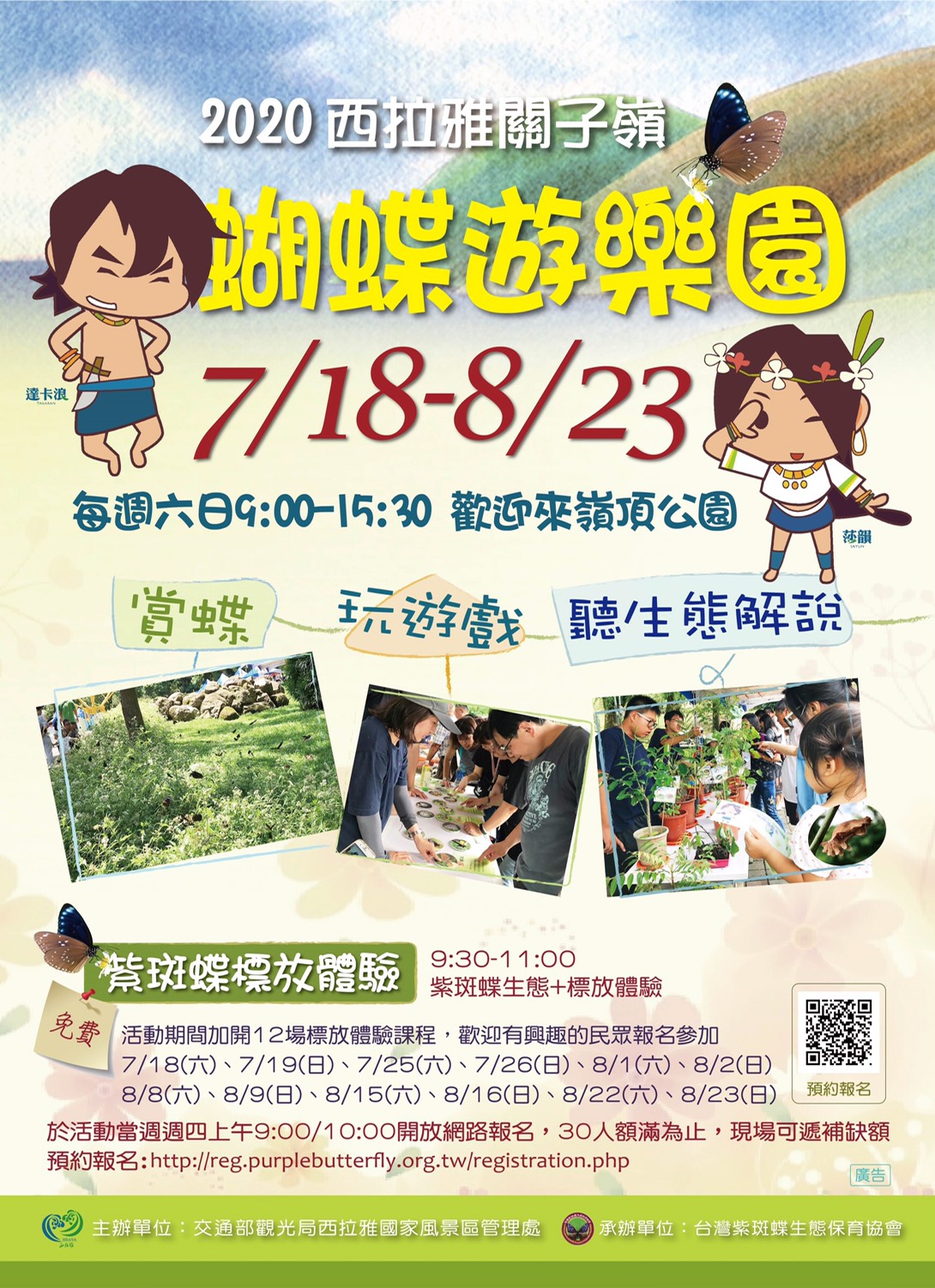 毎年大人気のエコツーリズムイベント“蝶の遊園地”は始まりました!関子嶺は豊か蝶の多様性を誇る地域です。シラヤ管理処は十年前始め、積極的に紅葉公園の蝶の環境を復興しています。シラヤ風景区管理処は長年に自然の再生を努ます。民衆たちに紫斑蝶を認識するために、もう十年連続“蝶の遊園地”のイベントを挙げました。