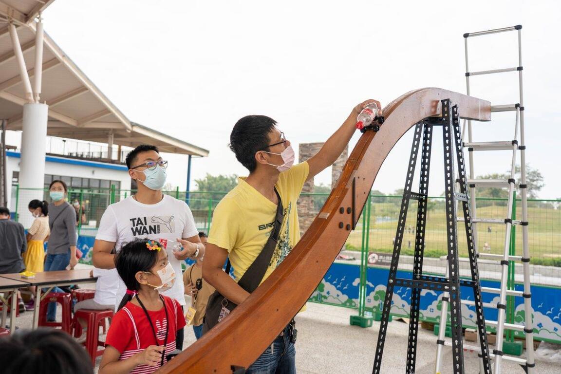 本次「小小飛車暖身賽」,管理處特別邀請到張崴縉教授帶領的「南臺學生方程式賽車團隊」來進行現場教學,該團隊成立於2006年,是臺灣最早的學生方程式團隊之一,多年來和來自不同國家的隊伍競爭,車隊的參賽車輛也在現場展示,讓參與活動的小朋友可以零距離接觸造車前輩的心血結晶。