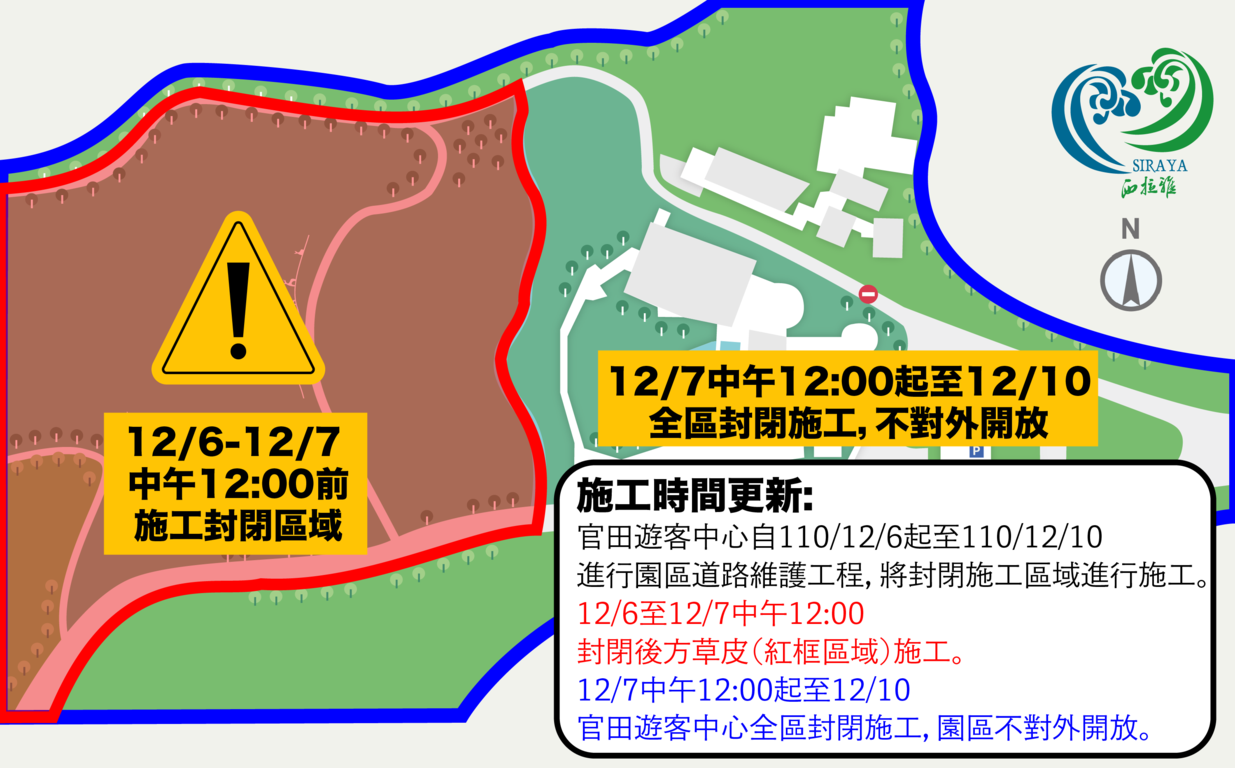 12/6-12/10官田遊客中心園區道路維護工程 封閉時間更新公告