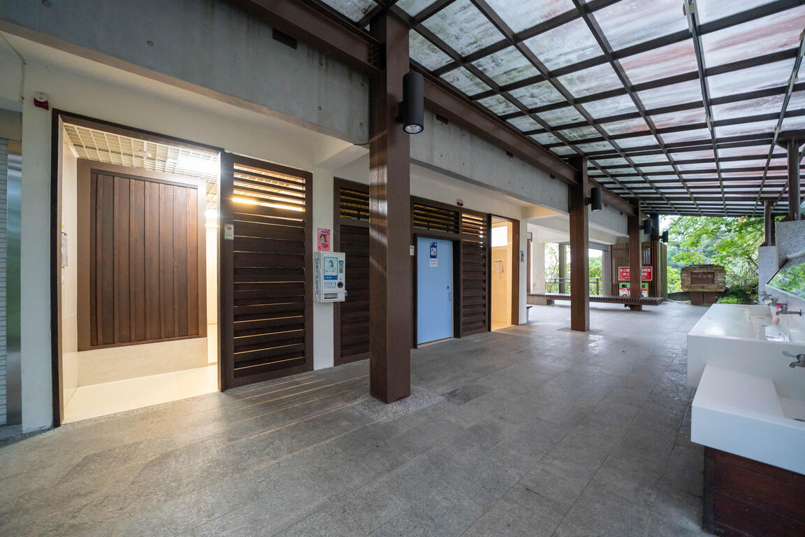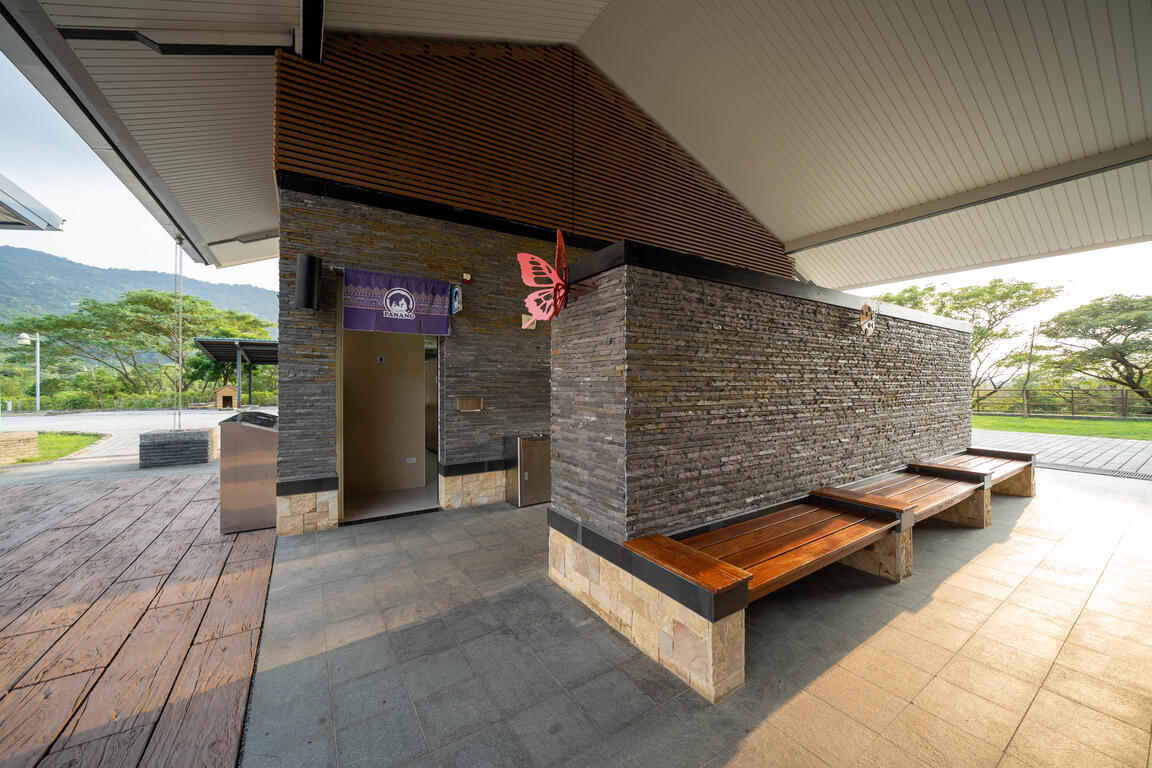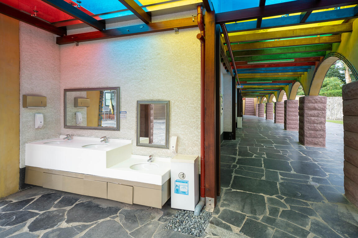 園區內設有兩處舒適潔淨的公廁,一處位於動畫館對面,提供民眾觀賞動畫館、八田宅內部展覽,或於各店家消費前後使用;另一處則位於園區草皮上,在欣賞完室外珊瑚苑的美景後,到南洋櫻樹下的椅子休息片刻,有如廁需求,可就近使用,公廁外牆上彩繪著櫻花,花瓣緩緩飄落的意象,象徵著悠閒放鬆的空間。