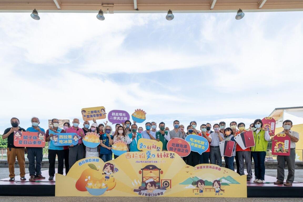 「來去西拉雅~Chill幾勒!」2022西拉雅夏日好秋祭即日起開跑,今日(6月16日)於官田遊客中心辦理宣傳記者會,並邀請到行政院雲嘉南聯合服務中心副執行長王開玹、臺南市議員吳通龍、議員陳秋宏、臺南市郭國文立委服務處副執行長陳怡如、賴惠員立委服務處秘書李錦華、陳亭妃立委服務處秘書黃麥娥、王定宇立委服務處秘書李開通、尤榮智議員服務處祕書楊素月、臺南市政府觀光旅遊局副局長林國華、官田區公所區長陳仁偉、玉井區公所區長陳新澈、台糖尖山埤江南渡假村總經理暨大西拉雅觀光圈聯盟盟主陳永成及各民意代表和在地協會理事長等人共同為活動揭開序幕,透過結合季節性活動、推出最強旅遊鐵三角,從食、宿、遊、購各角度切入,鼓勵民眾走入西拉雅轄區、感受在地美景;活動期間更推出「旅遊鐵三角」串聯抽獎活動,只要在社群活動貼文留言、分享指定影像,就能月月抽Iphone!讓西拉雅陪您歡樂度過炎熱的假期、一同Chill幾勒!