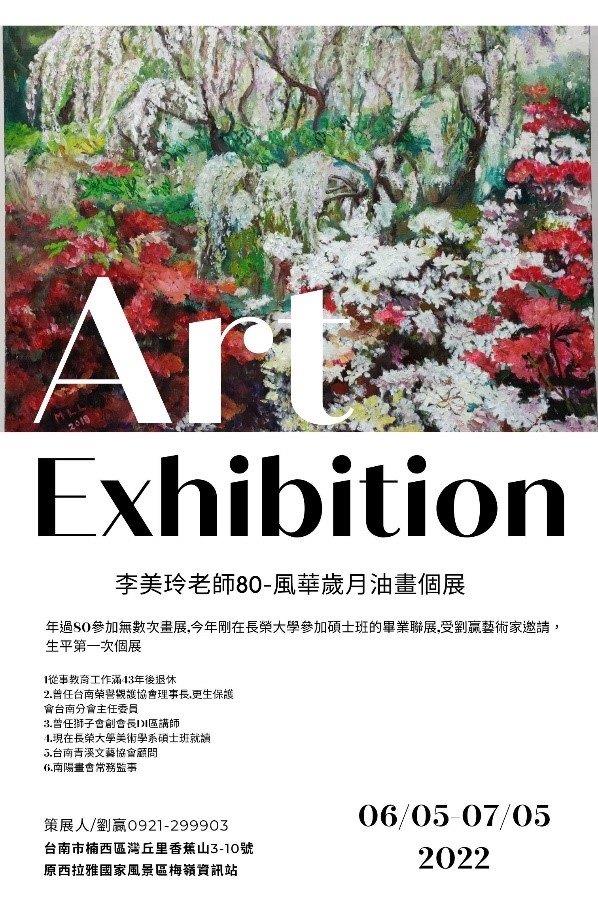交通部觀光局西拉雅國家風景區管理處梅嶺資訊站於6月12日起展開李美玲老師80-風華歲月油畫個展及沈子真老師鐵雕個展。李美玲老師雖然參加過無數次展覽,年過80的她生平第一次油畫個展特別在梅嶺資訊站展出,李美玲老師一生從事教育工作,熱心公益,對美的事物的觀察在其人生經歷豐富淬鍊下有其不一樣的詮釋;沈子真老師以早年的農器為素材,透過敏銳觀察與獨特的組合邏輯傳達對於人生的思索,引人玩味。兩位老師的作品一個繽紛一個樸質,值得細細觀賞。展場也是咖啡廳的複合式空間,在藝術氛圍下坐下來聊天、享用飲料,將會是一種不一樣的休閒模式,讓梅嶺風景區多了一個可以休憩的優質空間。