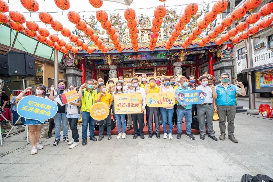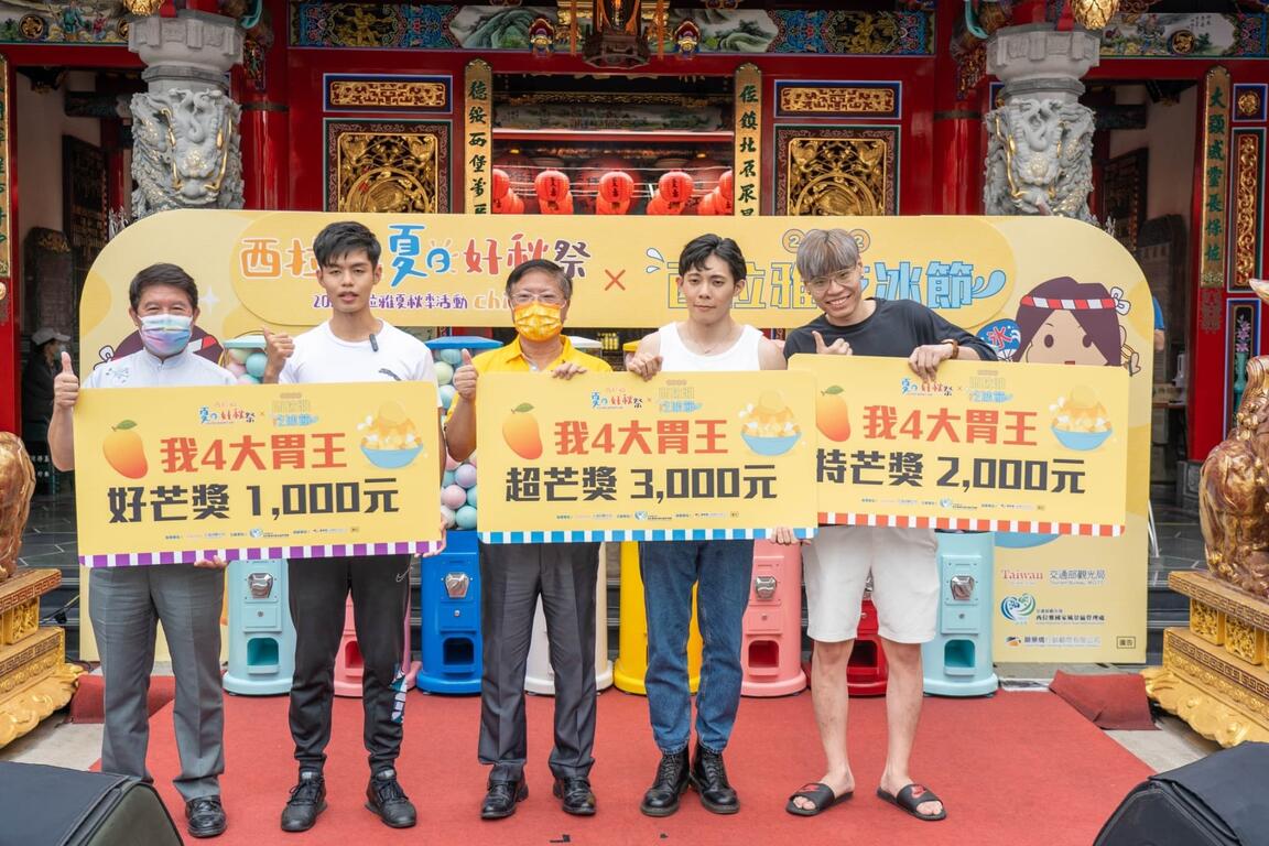 「西拉雅吃冰節」今日(7/2)於玉井北極殿前隆重登場!為向「玉井芒果冰金氏世界紀錄」致敬、以1:1000比例重現重達1.554公斤的芒果冰,搭配大胃王競賽,15名參賽者同時大口吃冰的畫面、讓現場民眾讚嘆連連,最後由深藏不露來自新北市的劉承鈺,也是新崛起的大胃王Youtuber-歐陽貪吃鬼,在129秒內取得冠軍!而消費滿額可兌換的1,000份扭蛋,也在活動開幕後不到三小時兌換一空,人潮滿滿的玉井街區也讓業者們Chill到合不攏嘴,邀請大家把握芒果盛產季、來品嚐西拉雅最Chill的美味!