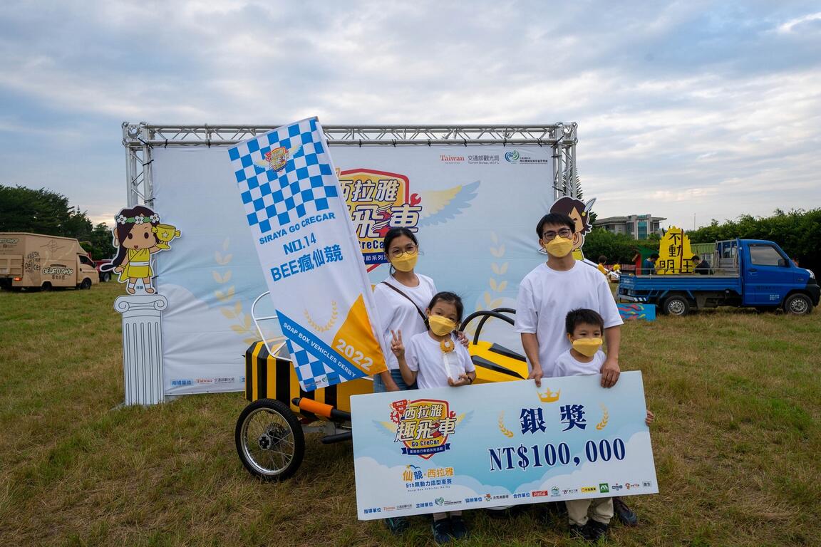 今年的評審團由陳明惠、朱家瑩、楊天祥、張崴縉、張育銘共5位老師擔任,評審們分別在設計、機械、車輛等領域有著豐富的經驗與專業,評審團依據各隊伍之造型創意、工藝、團隊精神進行嚴謹的評分,再加上關卡挑戰分數進行統整,奪得2022西拉雅趣飛車金獎的隊伍是來自嘉義的「火火火!火王爺」,以火王爺的造型作為發想,歷經重重考驗打敗其他參賽隊伍,登上新科西拉雅車神寶座,帶回金獎20萬獎金;銀獎由來自臺南的「BEE瘋仙境」得到評審們的認同,帶回10萬獎金;銅獎由是來自彰化的「玉山軍艦」憑藉精緻的造型拿下,帶回4萬5,000元獎金;前三名隊伍除了工藝精巧、創意無限贏得評審團,就連操駕技巧也都是評分的重點。今年在原定獎項外,評審們一致認為今年的造型車輛創意無限,幾經討論後決定加碼大會評審獎,由來自高雄的「章魚(修)旦己勒~」奪得,以鼓勵大家持續作夢、把夢做大!