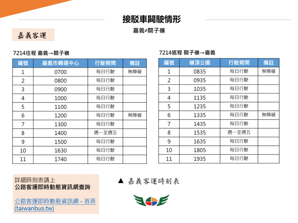 公車時刻表(僅供參考,實際以官網資訊為主)