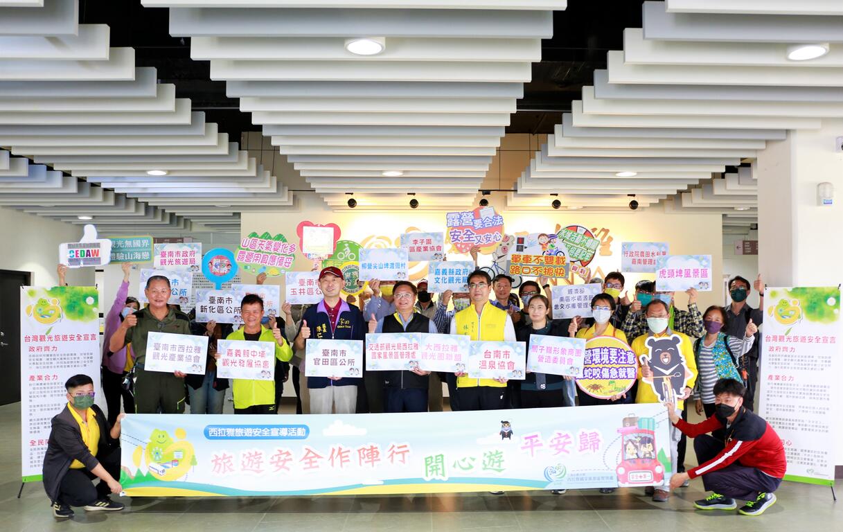交通部觀光局西拉雅國家風景區管理處為強化轄區內旅遊安全意識,以「自行車旅遊安全」為主題於112年3月21日邀集轄區公部門、大西拉雅觀光圈業者、台江國家公園管理處及雲嘉南濱海國家風景區管理處等共同簽署「112年旅遊安全宣導」連署宣言,並以「政府齊力、產業合力、全民同心」為宣導宗旨,共同營造大西拉雅地區優質及安全的旅遊環境。