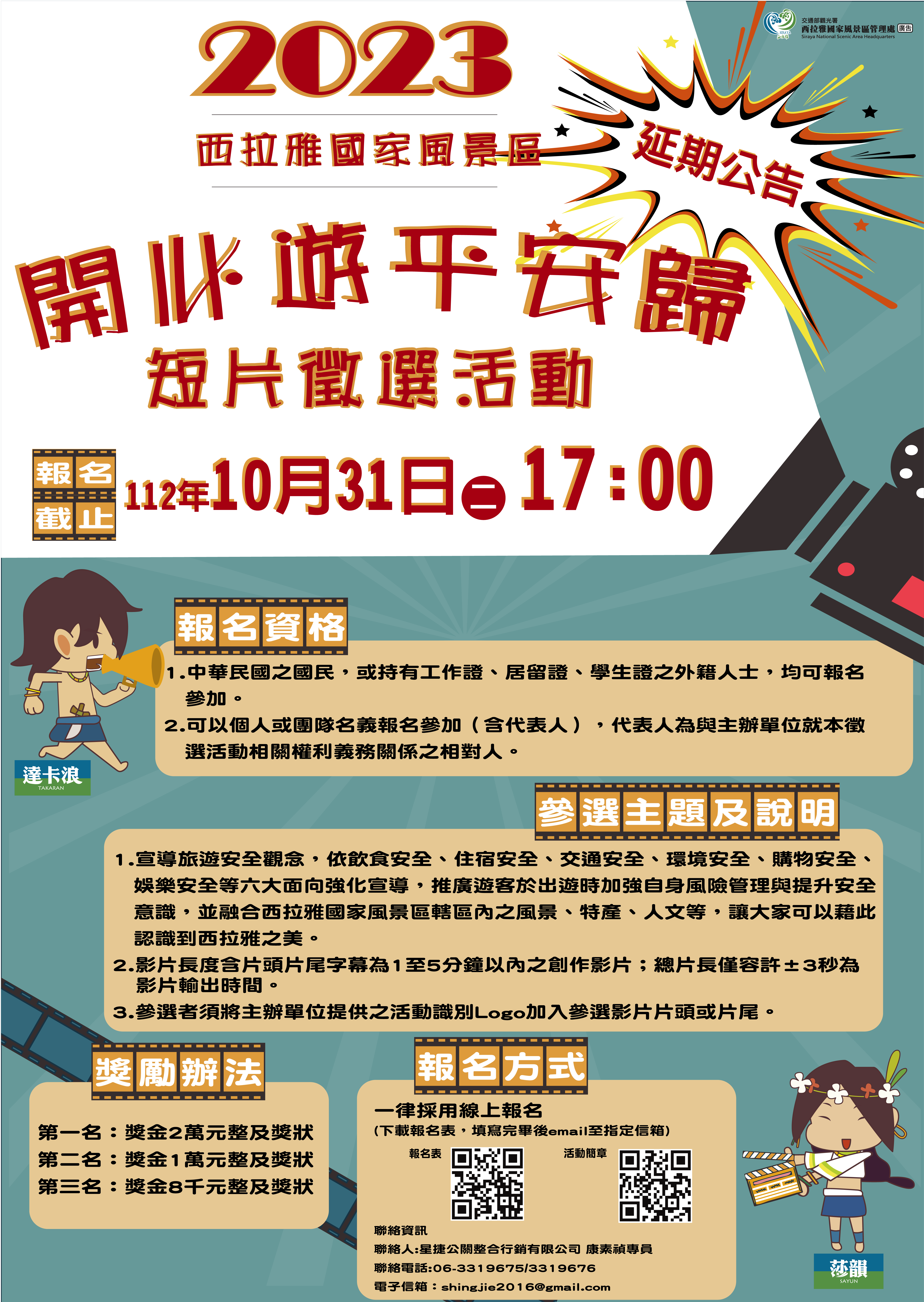 收件截止時間:即日起至10/31 17:00止,寄送報名表及上傳參選作品。