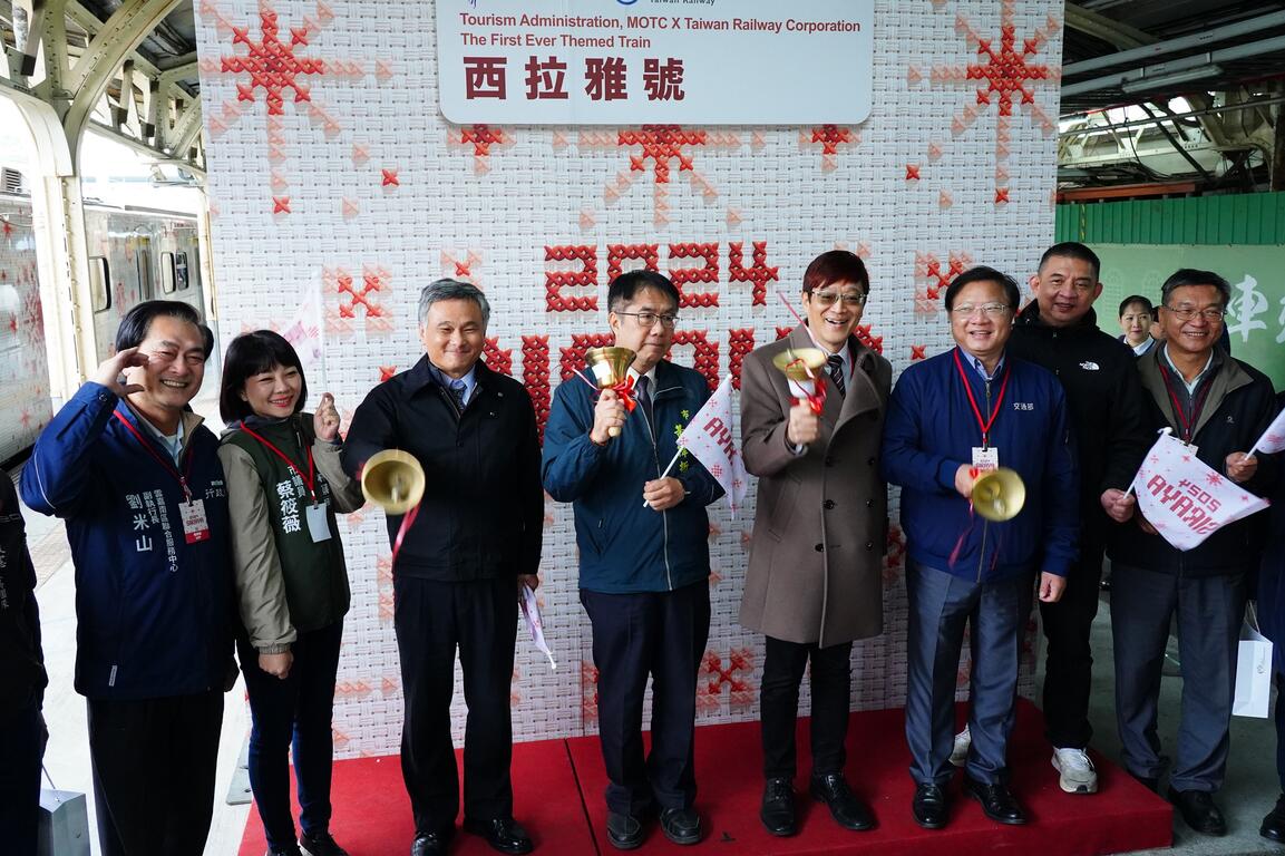 由交通部觀光署與國營臺灣鐵路股份有限公司(以下簡稱臺鐵公司)元年首部攜手合作的主題彩繪列車「SIRAYA西拉雅號」今天正式啟航囉!昨(22)日於樹林車站發佈的「SIRAYA西拉雅號」,今天開來到臺南車站,現場由臺南市長黃偉哲、交通部觀光署副署長林信任、臺鐵公司副總經理劉雙火、西拉雅管理處處長徐振能、臺南市政府觀光旅遊局局長林國華、外交部雲嘉南辦事處處長蕭勝中、行政院雲嘉南區聯合服務中心副執行長劉米山、大鵬灣管理處副處長王玟傑、雲嘉南管理處副處長洪肇昌、茂林國家風景區管理處副處長李易蒼、臺鐵公司機務處副處長吳元復、臺鐵公司營業處處長陳榮彬、臺鐵公司南區營運處處長陳文川、臺鐵公司附業營運處高雄餐旅分處經理董阿成、郭國文立法委員辦公室、陳亭妃立法委員辦公室、林俊憲立法委員辦公室、台灣觀光休閒產業聯盟協會理事長翁廷芳、臺南市西拉雅觀光產業協會理事長林憲堂等觀光圈業者們共同舉行啟航儀式正式啟航,未來的日子主要行駛於嘉義、屏東區間,沿途經過多個景區,歡迎民眾搭乘西拉雅號到臺南參加2024的台灣燈會及參與大型活動,隨後再到南部幾個景區體驗不同的人文風情,來一趟永續旅遊。