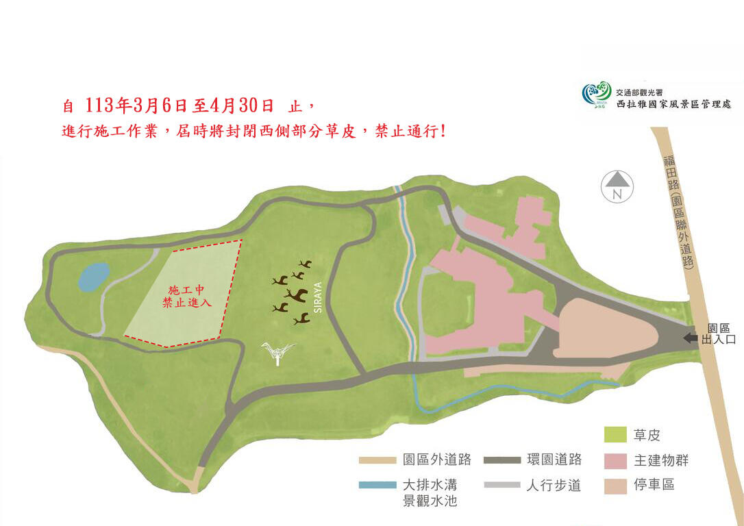 【公告】113年3月6日至4月30日官田遊客中心草皮區場地維護工程