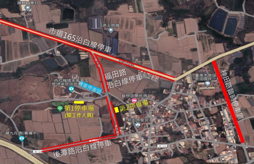 為確保交通順暢,活動期間將施實交通管制,請配合交管人員指示方向行駛。此外,除了官田遊客中心外的停車場開放民眾停車,福田路、市道165、神田路也有申請路權可開放民眾緊靠路邊停車、另陽明工商也有提供部份停車位,因現場停車空間有限,民眾可搭乘臺鐵至隆田火車站轉乘台灣好行菱波官田線至官田遊客中心下車,也可多加利用免費接駁車前往活動現場,減少步行與尋找停車位的時間,輕鬆暢遊森活節。