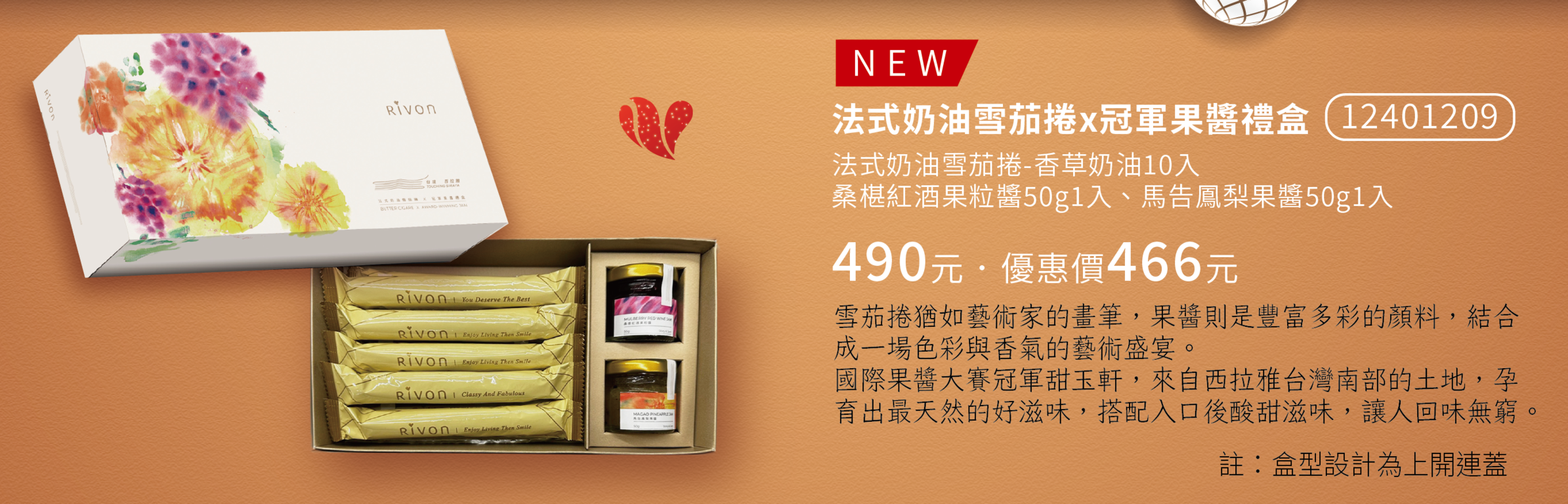 歲未年終將至,不論是需要送禮表心意,或是在午茶食刻來場美味邂逅,「法式奶油雪茄捲x冠軍果醬禮盒」都能讓人感受在地熱情與獨特風味,表達獨一無二的濃郁心意。而在地特色食材與法式浪漫融合,也帶來雙重的味蕾饗宴,美妙滋味令人回味無窮!即日起禮盒限量開放預購,預購期間享95折優惠!把握限時優惠,為送禮增添濃濃心意與祝福吧!