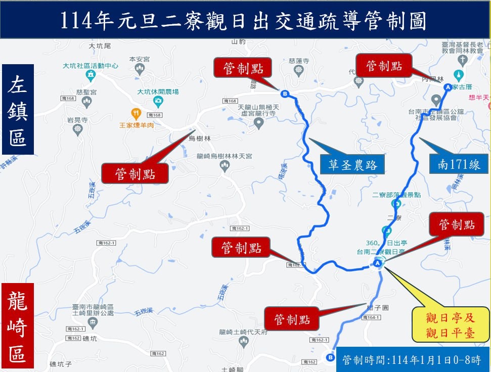 迎接2025臺南第一道曙光 二寮元旦交通管制