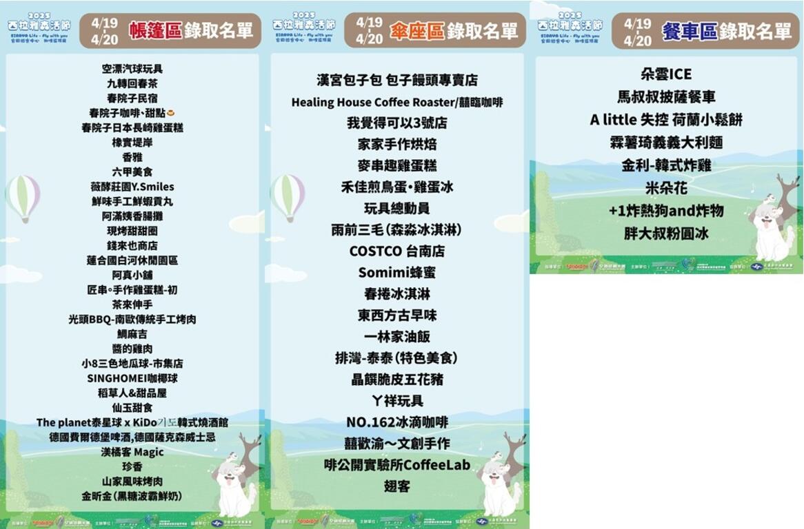 - 錄取之市集攤商請依限繳交保證金及租金,逾期視同放棄,將另由其他攤商遞補。