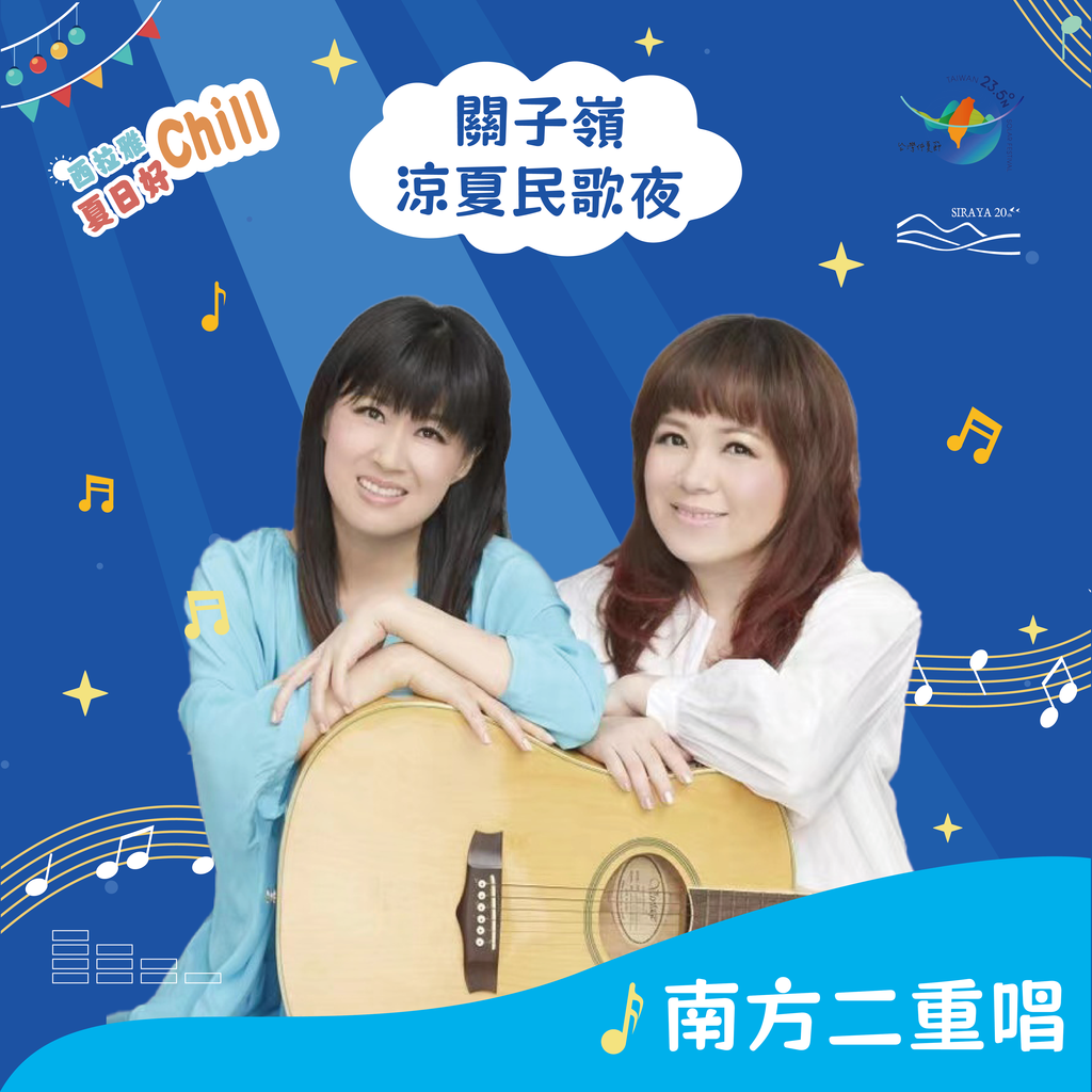「2025西拉雅夏日好Chill-關子嶺涼夏民歌夜」將於8月16日晚間6點30分,首度在臺南關子嶺吳晉淮音樂廣場開唱。當天將邀請多位金曲獎得主與實力派歌手齊聚一堂,共同為夏夜注入動人旋律。演出陣容堅強,包括深受樂迷喜愛的南方二重唱、金智娟(娃娃)、陳傑洲與馬毓芬,勢必為現場觀眾帶來一場溫馨又感動的音樂饗宴。
