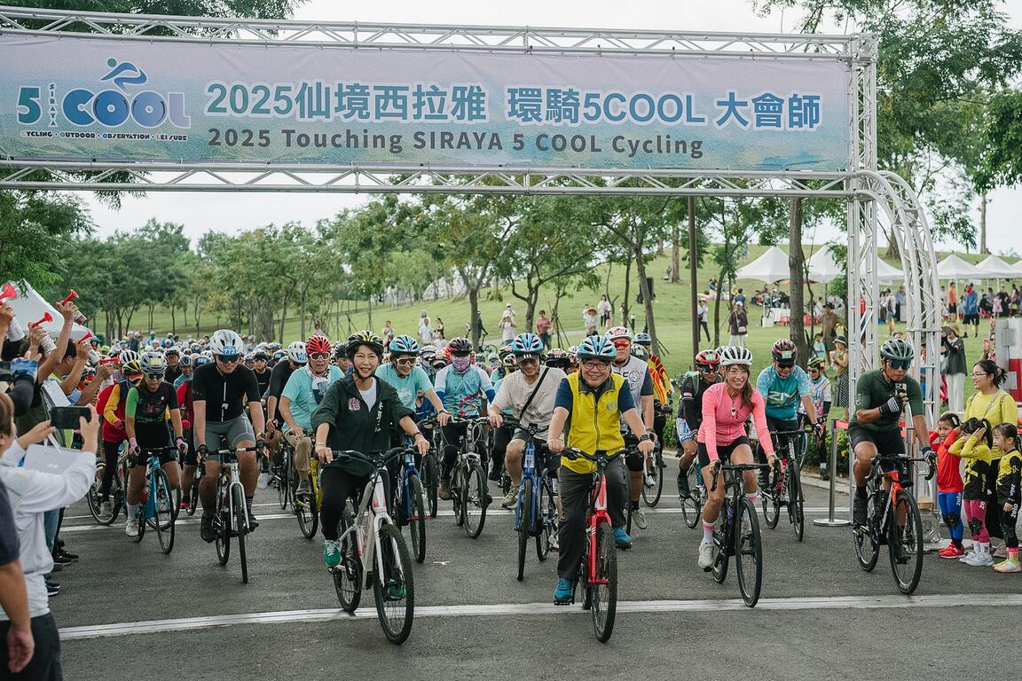 交通部觀光署西拉雅國家風景區管理處114年9月13日(星期六)於官田遊客中心舉辦「仙境西拉雅 環騎5COOL大會師」活動,吸引超過350名自行車愛好者齊聚共襄盛舉。活動由臺南市立法委員陳亭妃、交通部觀光署西拉雅國家風景區管理處處長許主龍、立法委員郭國文服務處代表、立法委員林俊憲服務處代表、臺南市議員陳秋宏服務處代表、臺南市議員吳通龍服務處代表、臺南市議員尤榮智服務處代表、經濟部水利署南區水資源分署曾文水庫管理中心主任吳俊杰、農業部農田水利署嘉南管理處烏山頭水庫風景區分處主任邱寰一、臺南市政府觀光旅遊局專員李雅玲、臺南市政府警察局麻豆分局分局長洪國哲、六甲區公所區長陳啓榮、臺南市官田區官田國民小學校長陳慶林、中華民國旅館商業同業公會全國聯合會理事長洪崇元、台灣觀巴協會理事長陳柏勳、臺南市西拉雅觀光產業協會暨臺南溫泉協會理事長林憲堂、臺南市旅館商業同業公會理事長邱顯年及臺南市餐旅教育協會理事長周立峯等貴賓共同鳴笛啟動,由中華民國自行車騎士協會及網紅領騎出發,沿途串聯五大水庫,暢賞湖光山色,推廣全新升級的「西拉雅5COOL」自行車品牌。