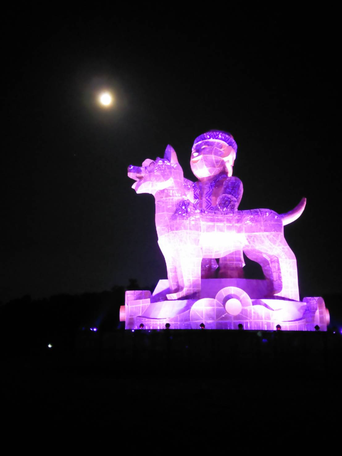 今年台灣燈會主燈設計是一位笑容天真的原住民孩子,身旁陪伴著一隻忠心耿耿的台灣犬,佇立於阿里山雲海山巔,主燈高21公尺,要在遼闊的走馬瀨大草原的夜空裡繼續綻放光芒,與夜幕裡星光月色相互輝映,美不勝收。
