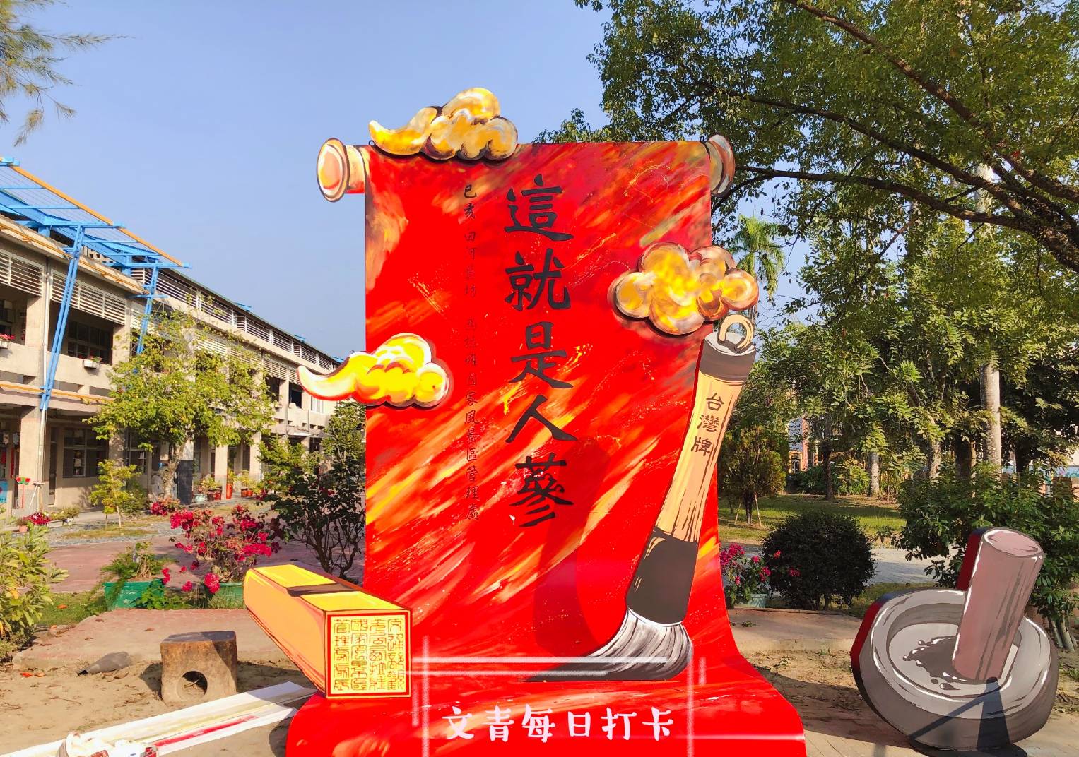 以文房四寶為概念的藝術裝置-「這就是人蔘」正式亮相! 創新的書法展現形式,融入第三屆PPT票選流行時下話語「這就是人蔘」,象徵人生就像寫書法,有時簡單有時狂野的人生哲學,使人會心一笑,並扭轉書法向來沉穩的意象,以年輕、趣味的的風格呈現,打造地方吸睛打卡新地標!