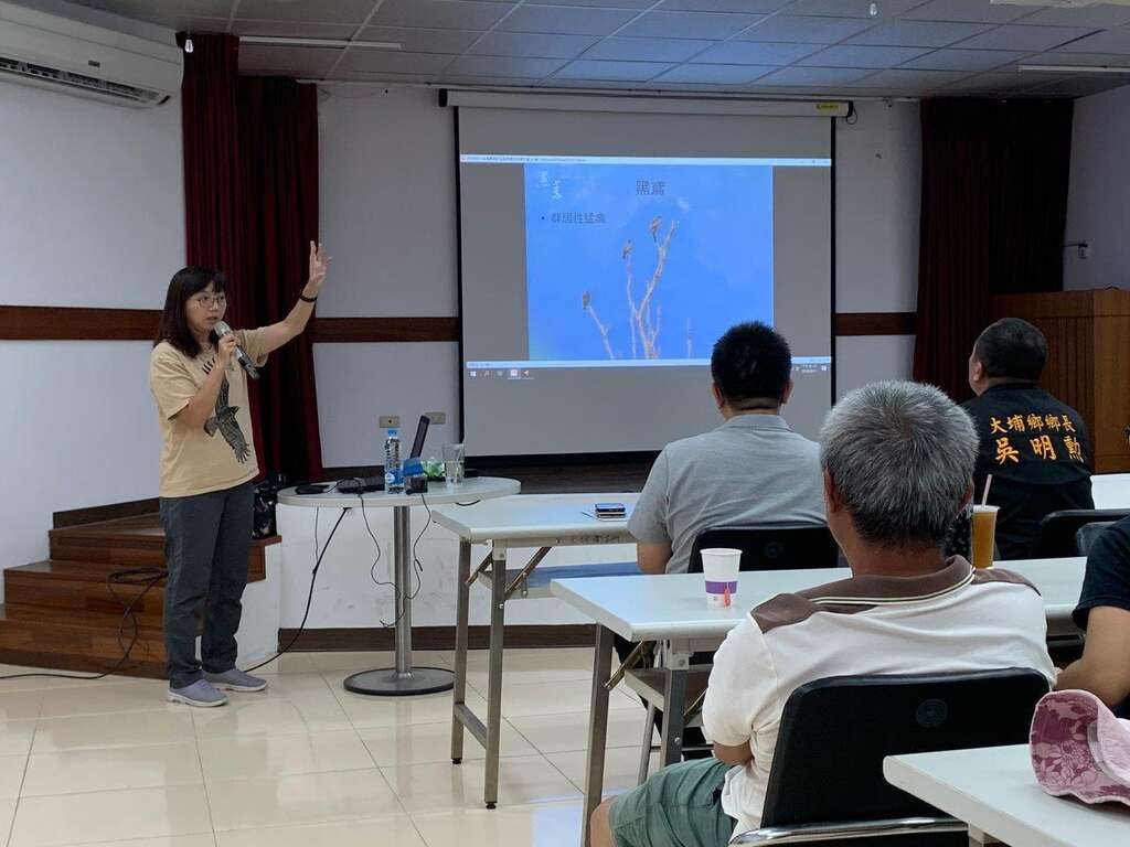 在保育界素有「黑鳶公主」暱稱的林惠珊研究員,應本處的邀請,於9月11日來到嘉義縣大埔鄉傳授對於全國黑鳶調查研究的心得,會後並到大埔中小學與師生相見歡,讓在地的子弟了解曾文溪流域的黑鳶特性,進而更認同鄉土。此為推動大埔成為「老鷹之鄉」旅遊目的地形象的初期行動。