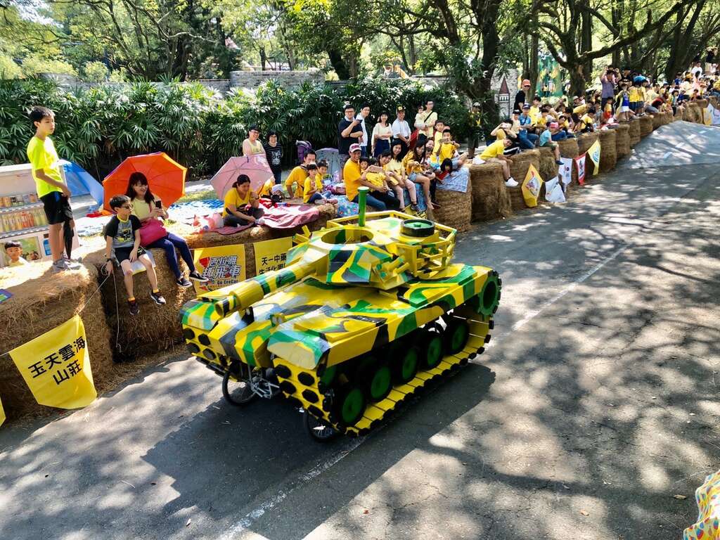 緊張的賽事在主題車「黃色西拉雅號」開跑後正式開始,各路好手站上象徵「走馬之巔」的起跑台,展示他們數月來的心血,也透過精彩又爆笑的演出體現團隊的精神。造型車從動物、古早味遊戲到陸海空盡出的交通工具,無奇不有,甚至為了符合今年加入評分的黃色元素,居然不約而同地有超過三組香蕉造型車,真是好看又好玩!今年的賽道關卡將比賽的刺激性與西拉雅特色合而為一,第二關「二寮追日」是大家耳熟能詳的左鎮二寮低海拔曙光雲海;第三關「壩頂甩尾」展現西拉雅獨特的水庫風光;第四關「175飄移」是175市道的縮影,沿線可口的咖啡、椪柑、龍眼可不能撞到了;終點第五關「抱走芒果」順利完成的選手,就可以抱走玉井最有名的芒果冰。
