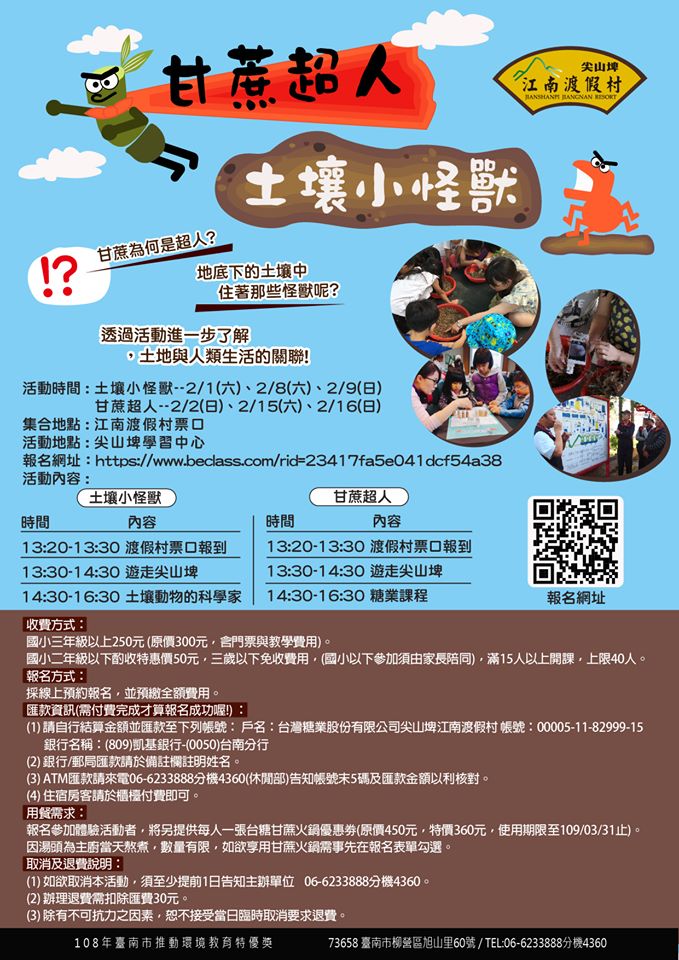 甘蔗超人有無敵的神力,能淨化空氣、製成我最喜歡吃的糖、還有...(秘密),還是可以起死回生的複製人呢,報名體驗,一起對甘蔗的神力哇哇哇吧~~~