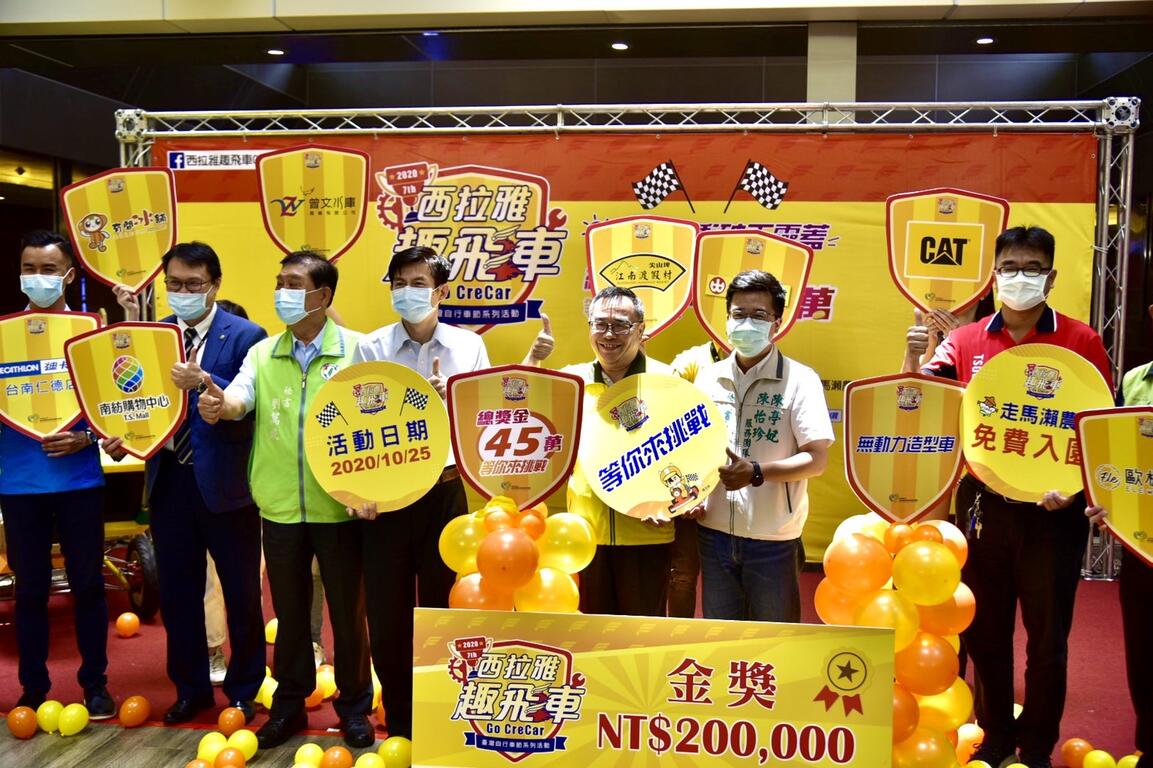 讓你的想像力衝衝衝!衝破天靈蓋吧!2020西拉雅趣飛車等著你把最酷最帥的點子都拿來! 交通部觀光局西拉雅國家風景區管理處所舉辦南臺灣地表最瘋狂的賽事-2020西拉雅趣飛車報名正式開始了!總獎金高達45萬的趣飛車賽事,每年都吸引許多隊伍報名,今年將在10月25日於走馬瀨農場角逐最狂車神封號!管理處於今日(8月6日)在臺南南紡購物中心舉行記者會暨宣傳活動,正式招募隊伍,即日起開放報名至9月21日止,並於9月24日公布入圍名單,前35隊報名且完賽者還可以享有交通補貼5000元。強力邀請大家一起脫離地心引力的控制,瘋狂飛車吧!