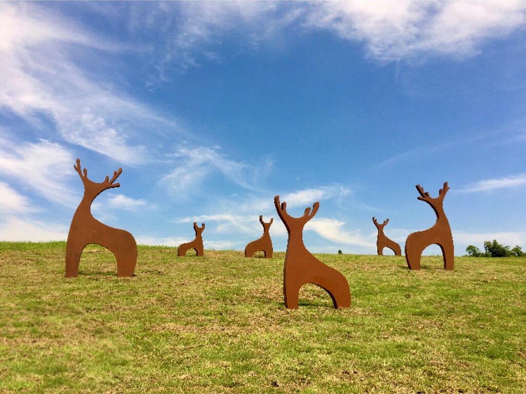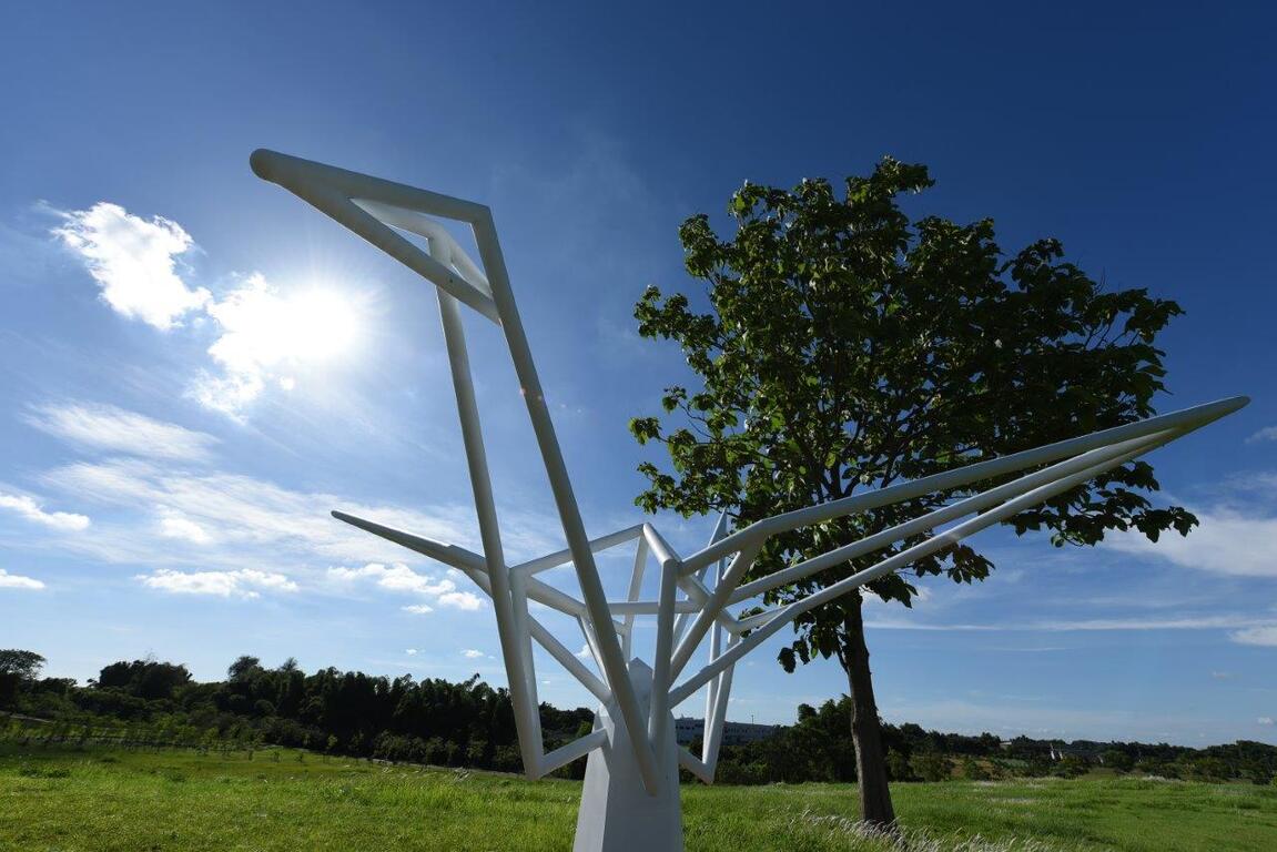 大草原上的「許願鶴 幸福翔起」地景藝術作品也是由蕭青陽老師操刀,打造獨一而二的地景藝術作品,白色骨架打造出紙鶴構造,自然融入地景之中。歡迎大家一起來與「許願鶴 幸福翔起」合照,並留言「西拉雅官田遊客中心,金鶴!」即可獲得限量版「金鶴」鑰匙圈乙個(每日限量,換完為止)。
