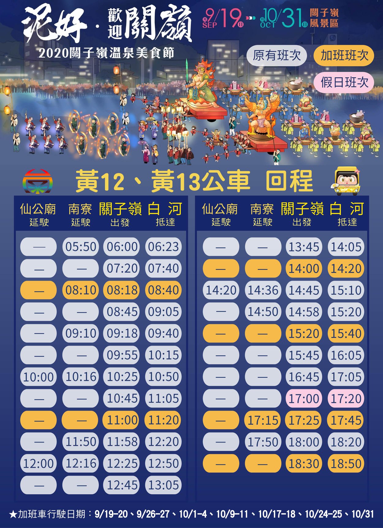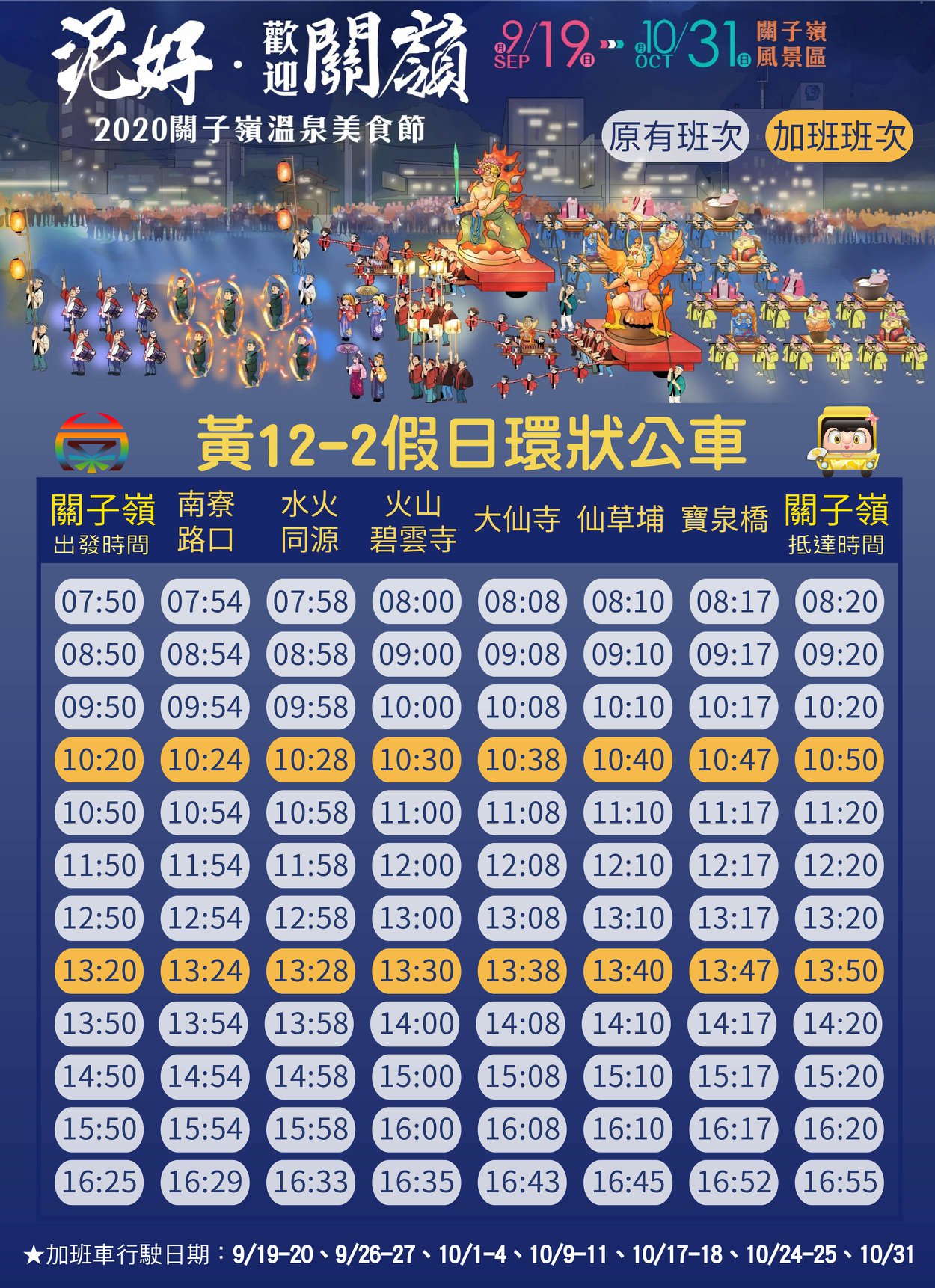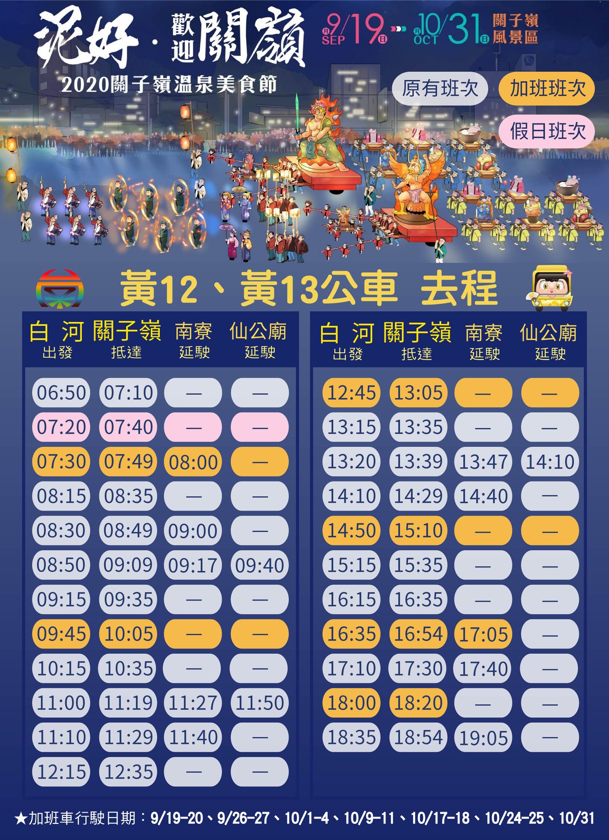 加班車次行駛日期(各車次的時間詳圖卡):