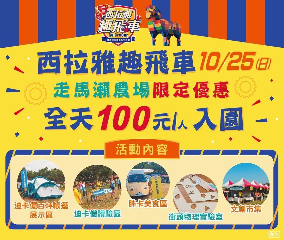 10/25(日)西拉雅趣飛車 走馬瀨農場入園只要100元!