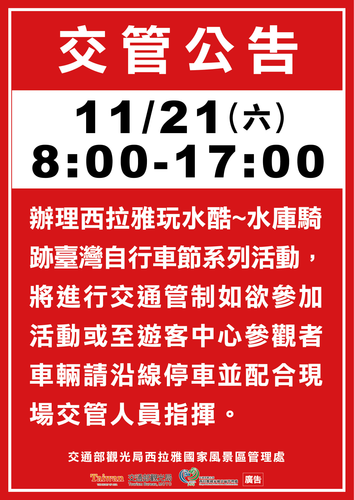 11/21(六)因舉辦 「2020西拉雅玩水酷水庫騎跡」活動