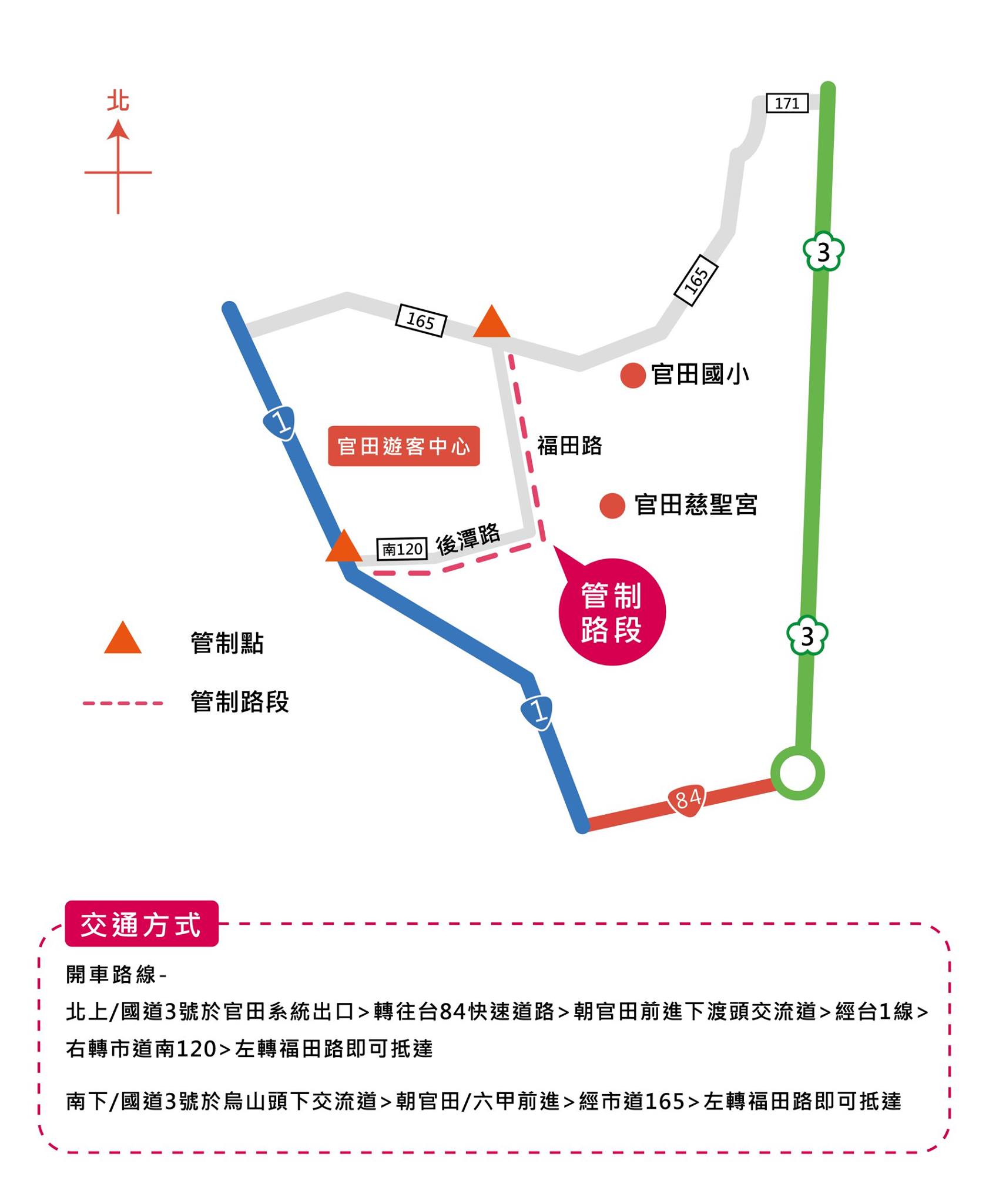 8:00-17:00間官田遊客中心周邊將實施【車輛管制】