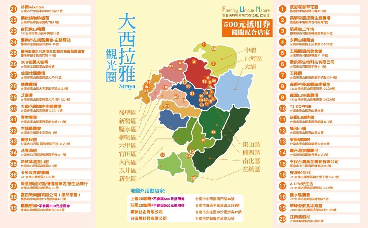 另即日起至3月18日止,只要在西拉雅管理處的官方FB紛絲專頁上分享活動貼文及留言,並@2位好友,即可參加抽獎活動,獎品包含大西拉雅觀光圈500元現金抵用券(於配合業者/店家使用)及東山咖啡隨身包。本活動奬項將於3月19日抽出幸運兒。