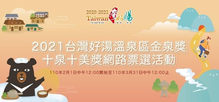 交通部觀光局舉辦「2021台灣好湯溫泉區金泉獎 十泉十美獎票選活動」,在網路上迅速地發酵,除了民眾反應相當熱烈,各溫泉區也皆想奪得冠軍頭銜,希望能在19區溫泉區當中脫穎而出;投票除了有機會獲得溫泉住宿券、泡湯券及IPHONE 12等多項獎品外,南投縣及苗栗縣政府更加碼送好禮,邀請大家一同參與投票活動,支持所喜愛的溫泉區。