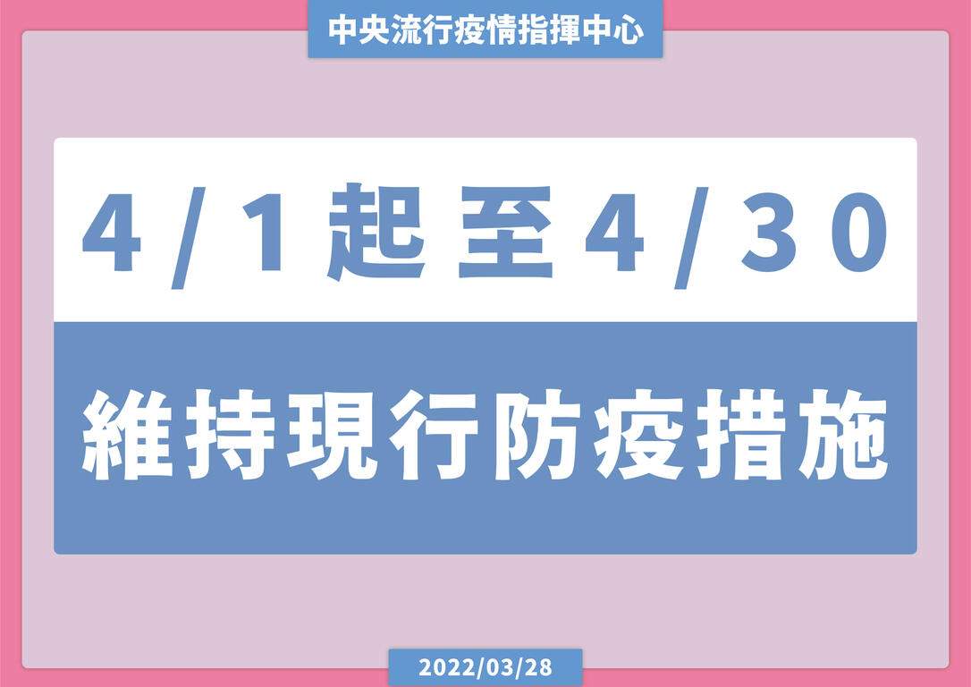 指揮中心提醒,體質敏感、有慢性病或發燒、呼吸道症狀的民眾,於人潮較密集區,仍建議戴口罩;防疫工作人人有責,請民眾自主落實防疫措施,維持個人衛生好習慣,保護自己也保護他人,共同維護國內社區安全。並籲請尚未完全接種COVID-19的民眾,儘速完成COVID-19疫苗接種,保護自身及親友健康。