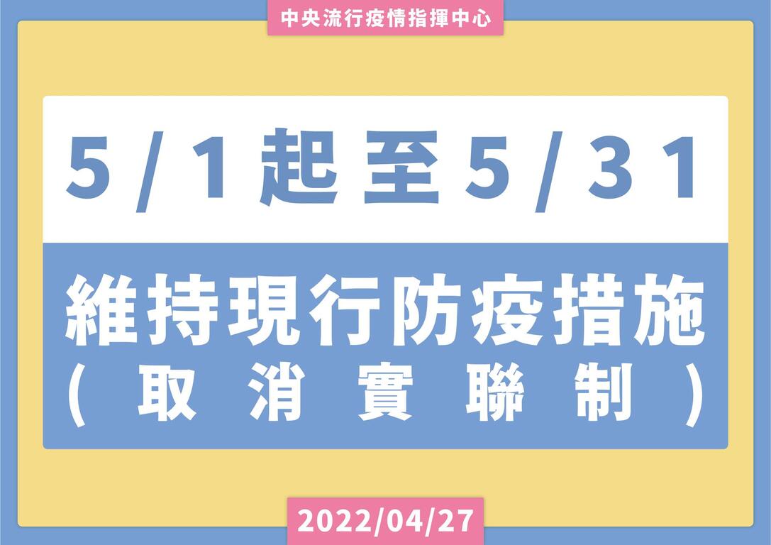 指揮中心指出,簡訊實聯制自去(2021)年5月19日起實施,透過「疫調輔助平臺」整合簡訊實聯制資料,協助地方政府疫調人員掌握個案相關活動史及匡列接觸者等,達到防疫之目的。截至今年4月26日止,已發送47.7億則簡訊,因應疫情發展及防疫新階段之措施調整,即日起取消實聯制措施,簡訊發送將自明(28)日零時起退場,鼓勵民眾下載及使用「臺灣社交距離APP」。該APP在廣泛使用下才能發揮最大成效,使用者只須下載安裝並開啟藍牙,APP即可記錄相關資料。民眾進入場域時僅需出示APP畫面,提供更便利之自主防疫方式。尚未安裝之民眾可至App Store及Google Play雙平臺下載使用。