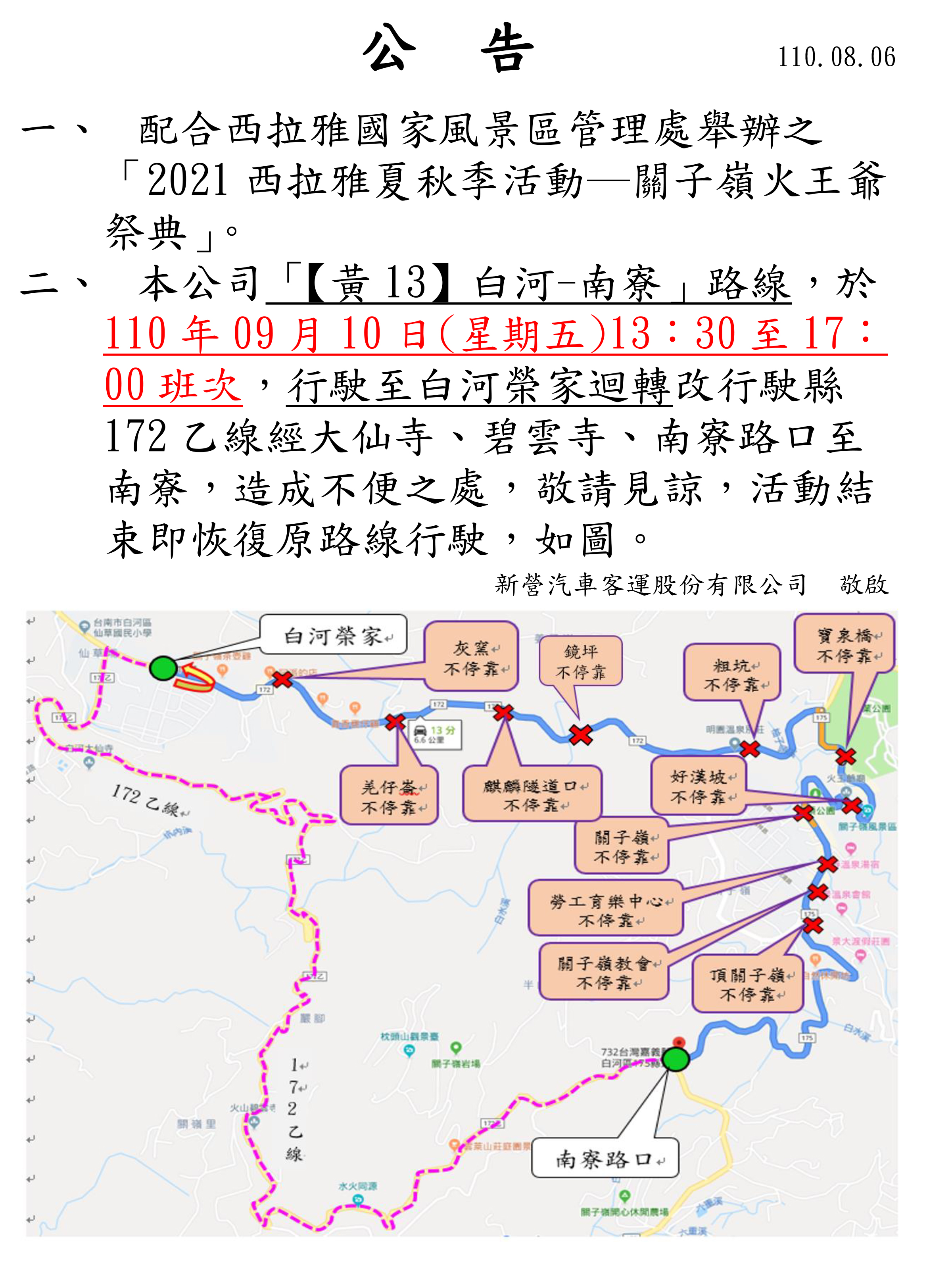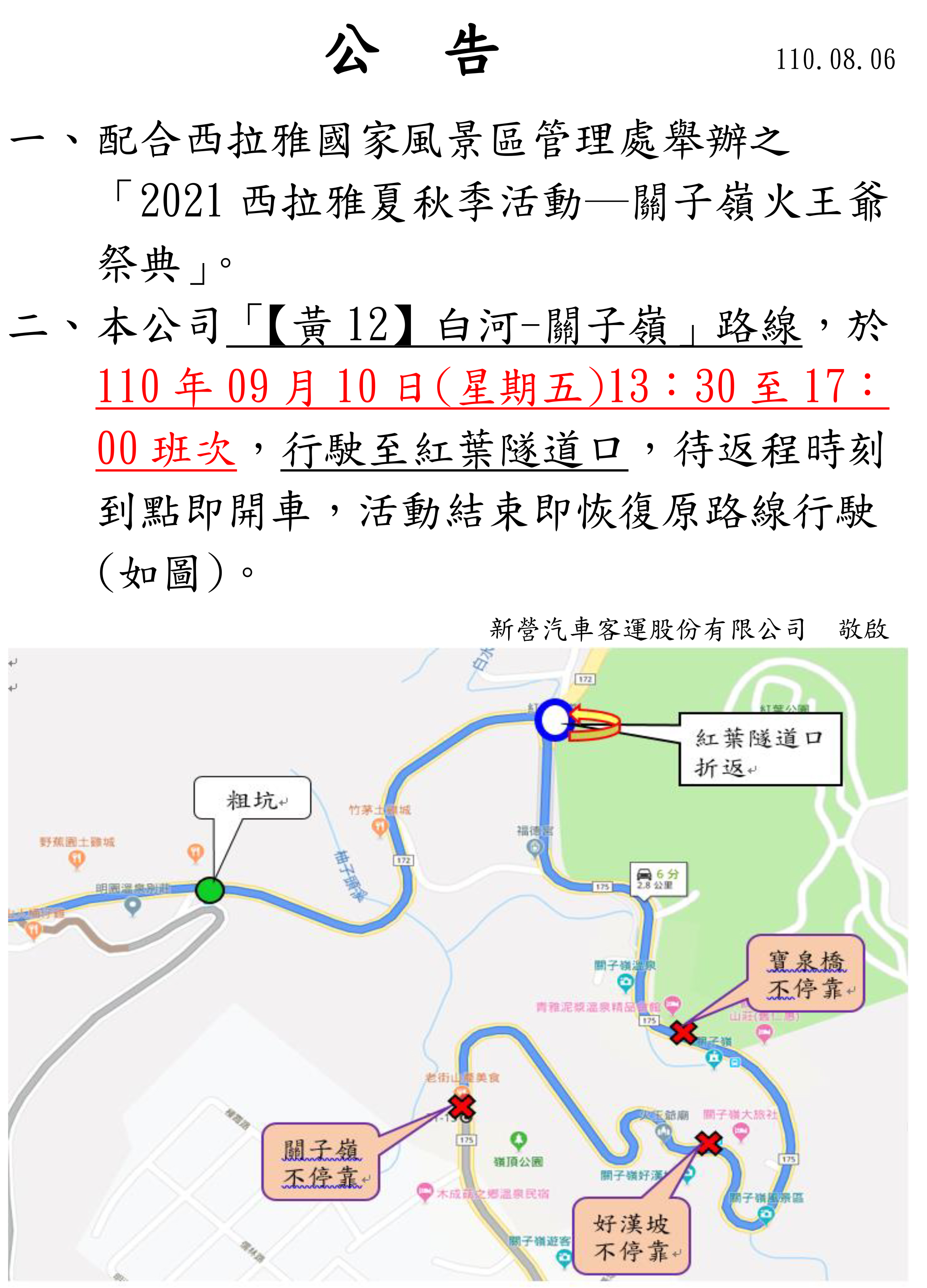 活動結束即恢復原路線行駛, 改道路線如附檔公告所示。