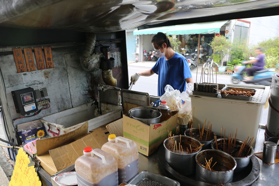 位於六甲國中校門口前,藍色鐵牛車,有別於一般關東煮黑輪米血,黑輪伯會將煮熟的黑輪米血再炸過一次,出鍋後裹上香濃的黑胡椒醬或蘑菇醬,是每天下課後的學生們必吃的點心,也是六甲人小時候的回憶。