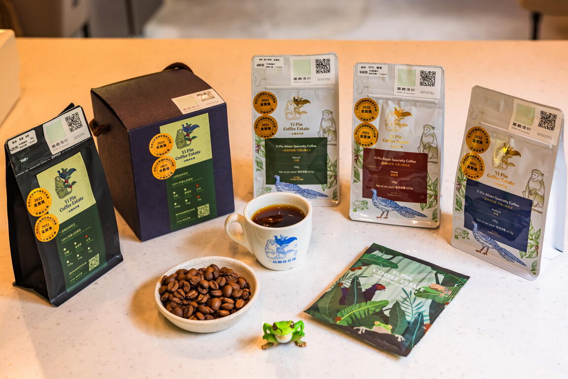 主理人父親不僅用心呵護這片撐起家庭的高山咖啡園,也愛屋及烏這片土地上的昆蟲與動物,園區內不僅能看見彩蝶翩翩飛舞,還時常巧遇藍腹鷴、臺灣獼猴、山羌,自然生態豐富,主理人將牠們設計在品牌LOGO上,紀念這份與山林居民的美好交會。