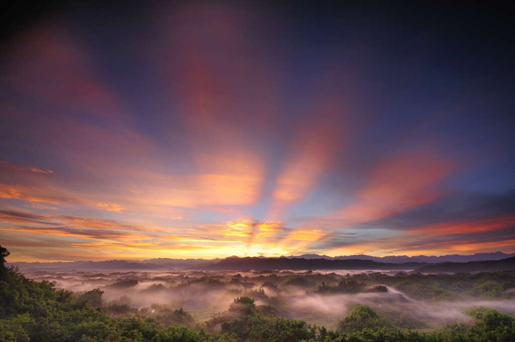 觀日平臺是賞日出的最佳位置,越接近日出時刻,金色晨光自白堊山丘後躍出,帶出千變萬幻的日出光影,彷彿身處潑墨山水畫世界。